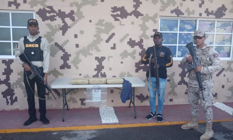 Pedernales. – Miembros del Cuerpo Especializado de Seguridad Fronteriza Terrestre (Cesfront), y agentes de la Dirección Nacional de Control de Drogas (DNCD) incautaron 30 libras presumiblemente marihuana, dentro de un t-shirt color azul marino, envueltos con cinta color marrón.